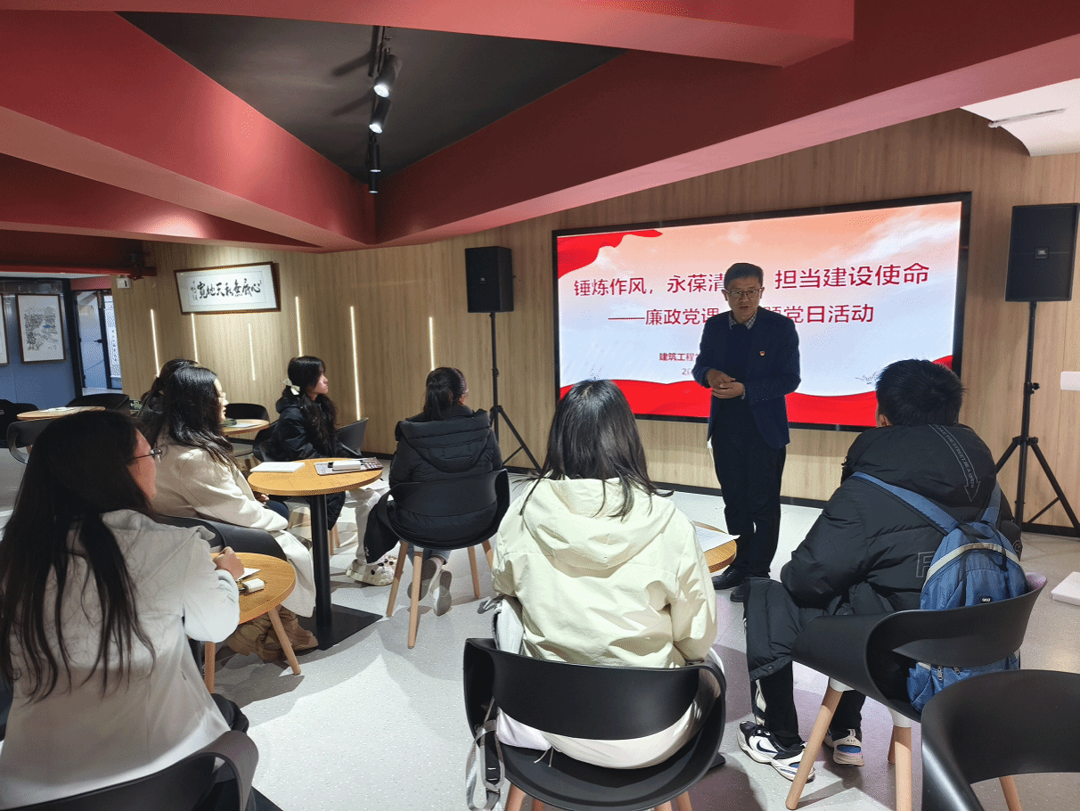 党课伊始,王国贤书记结合当前全面从严治党向纵深发展的时代背景,阐述了加强青年学生党员廉政教育的必要性和紧迫性。他指出,作风建设和清廉本色是共产党员的终身课题,对于未来将投身国家城乡建设事业的建工学子而言,更是关乎个人成长、工程质量和行业生态的重要基石。学生党员作为青年中的先进分子,必须从一开始就扣好廉洁自律的“第一粒扣子”,筑牢拒腐防变的思想堤坝。