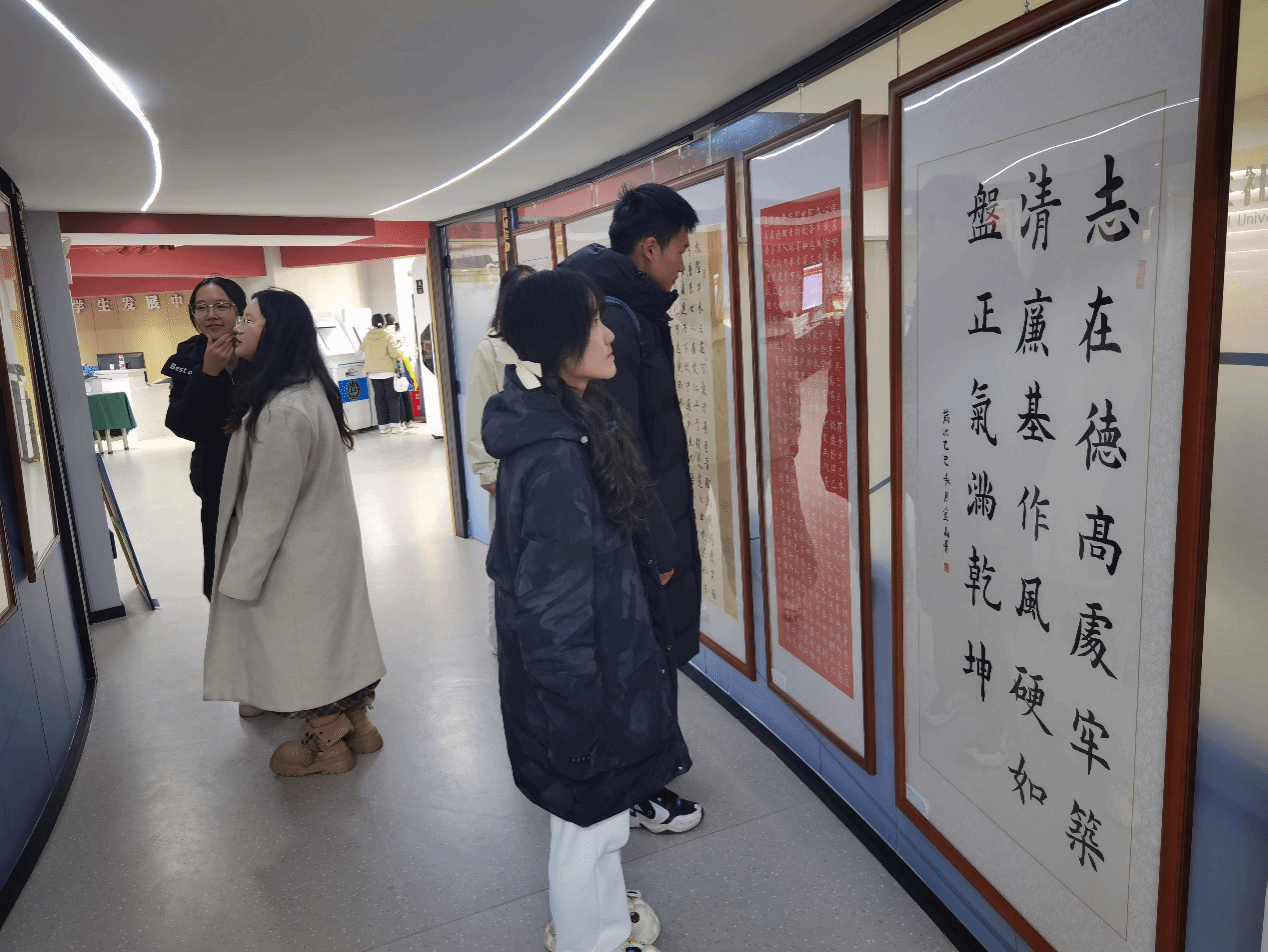 党课结束后,王国贤书记带领与会党员一同参观了学校举办的“培养过硬作风 筑牢清廉之基”廉洁文化作品展。展览汇集了书法、绘画、手工、AI作品类等多种形式的廉洁主题创作,将艺术赏析与廉政教育相结合,以直观生动的方式深化了同学们对廉洁文化的理解和认同。参观过程中,大家驻足观看,交流感悟,在浓厚的文化氛围中进一步接受了清廉思想的熏陶。