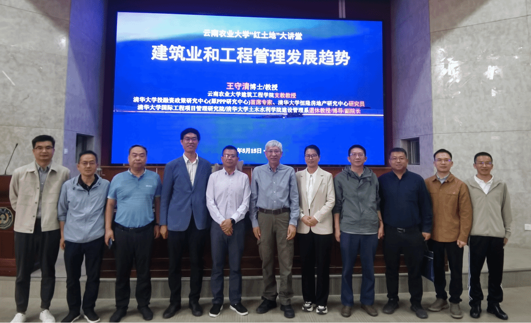 5月15日,我校银龄教师、清华大学王守清教授受邀出席云南农业大学红土地大讲堂,围绕“建筑业与工程管理发展趋势”作专题报告。王守清教授指出,当前建筑业向绿色化、数字化变革,国内建筑业正加速向“新经济、新能源、数字化”转型,基础设施REITs、TOT等模式助推存量资产盘活,PPP模式回归理性,强调风险共担与可持续性。住建部重构基建程序、推广工程总承包(EPC)与全过程咨询的政策导向,将进一步整合行业资源、提升效率,建筑业正走向高质量。